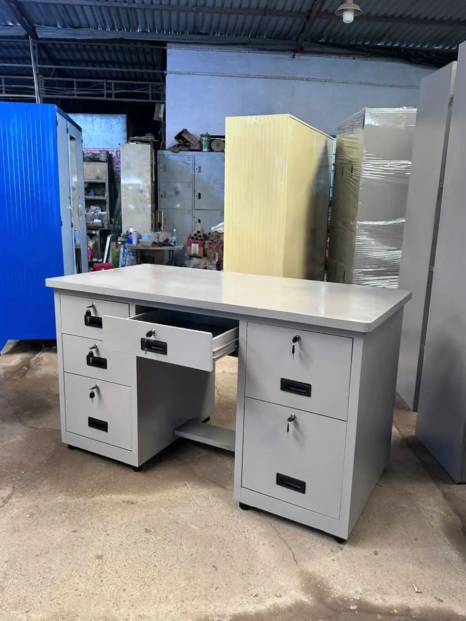 Bàn có 2 hộc liền hai bên, mỗi hộc gồm 3 ngăn kéo trượt êm, giúp lưu trữ hồ sơ và vật dụng gọn gàng.