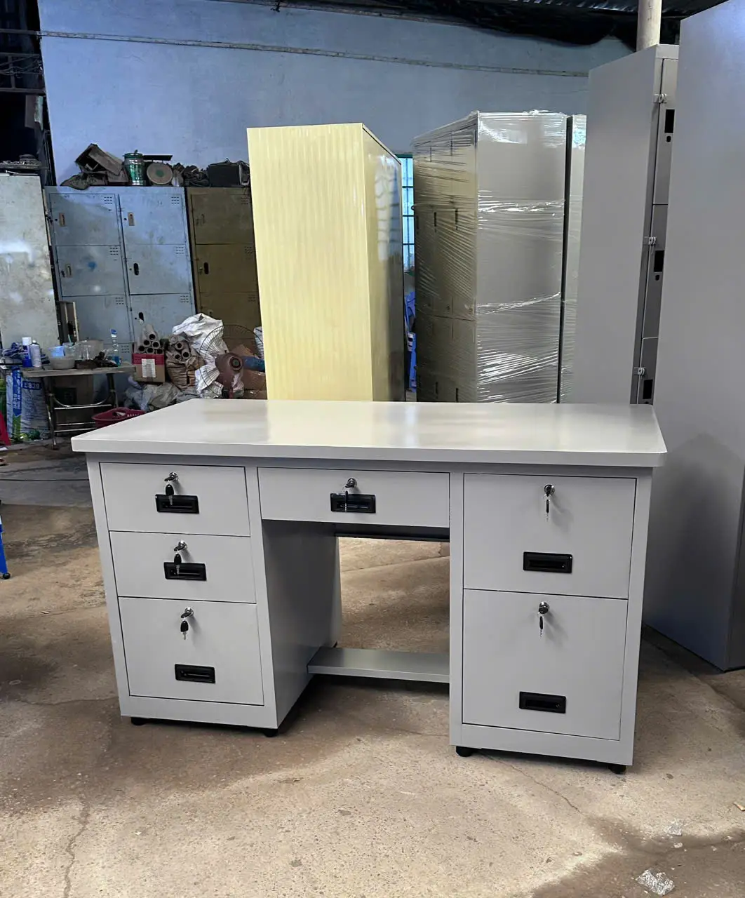 Bàn được sản xuất hoàn toàn bằng sắt sơn tĩnh điện, có độ bền cao, bề mặt chống trầy xước và dễ lau chùi.